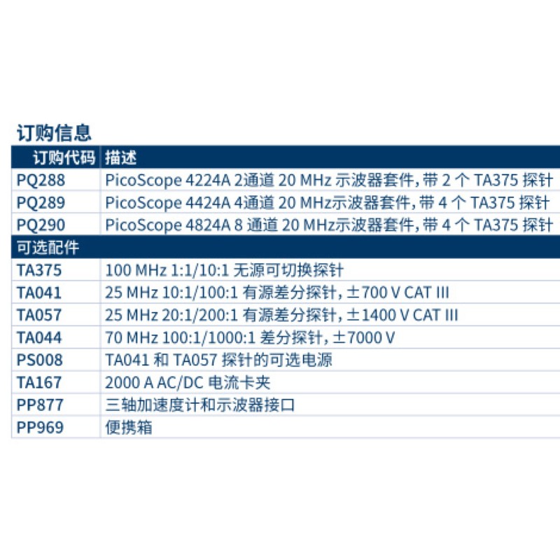 PICOSCOPE 4424A 4通道 20MHZ 示波器套件帶4個TA375探針